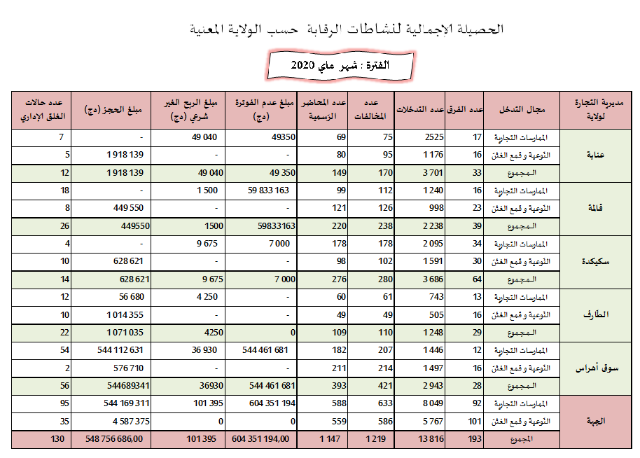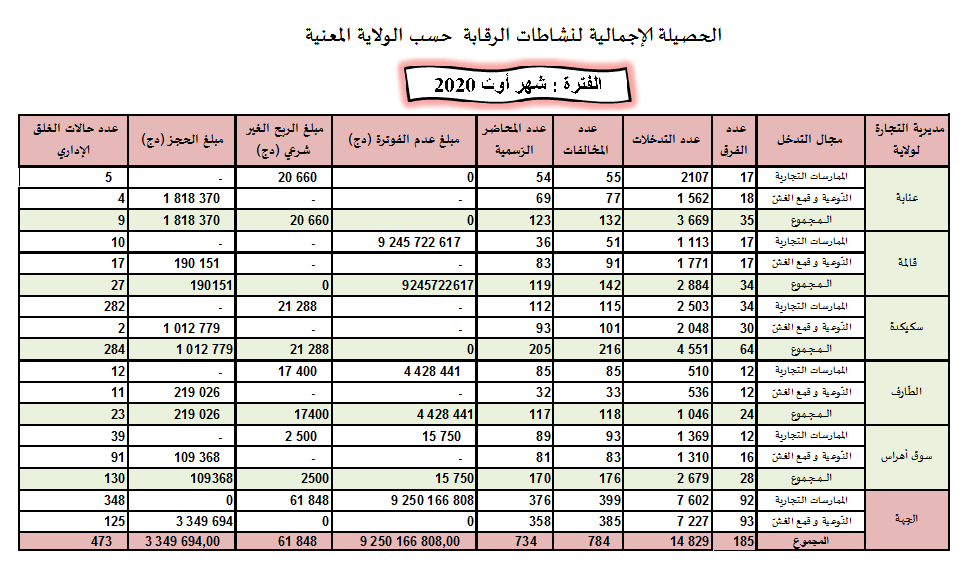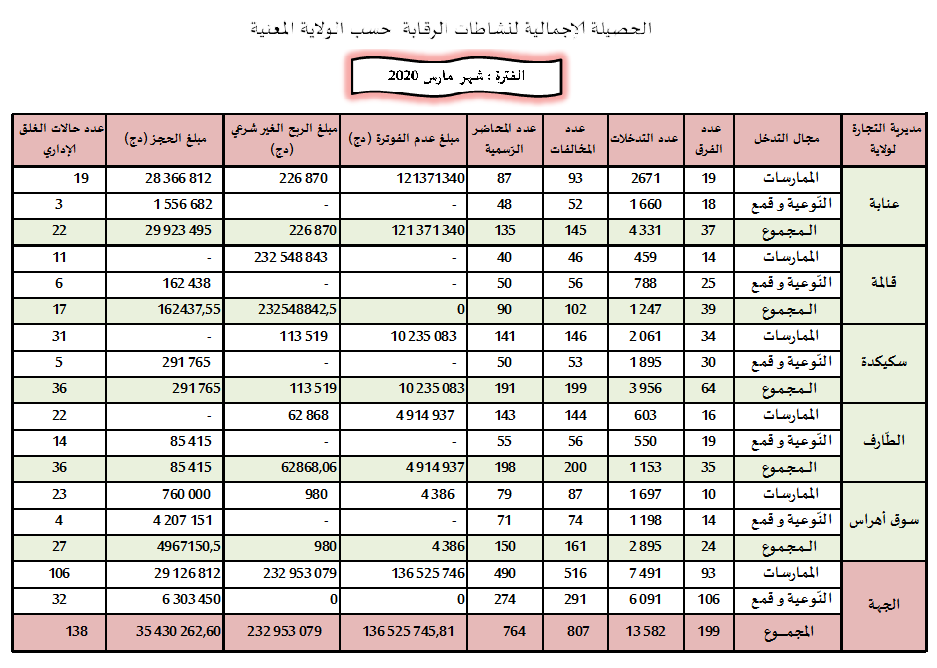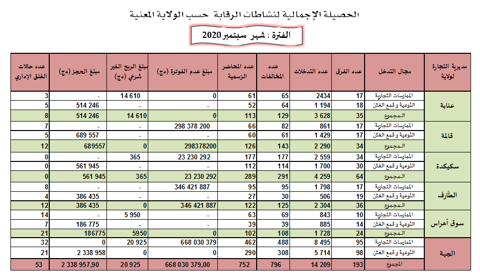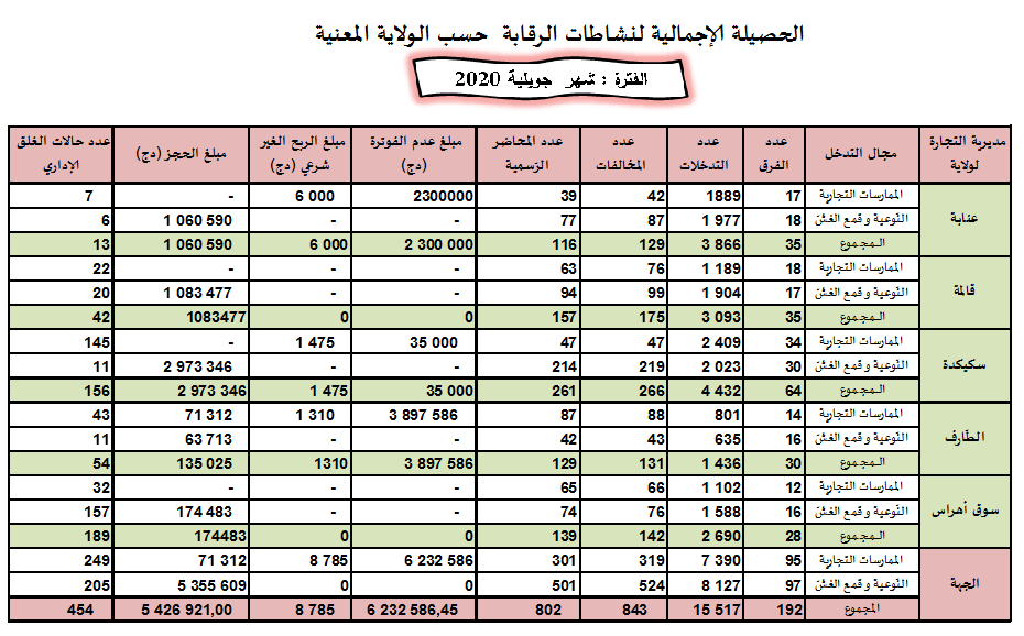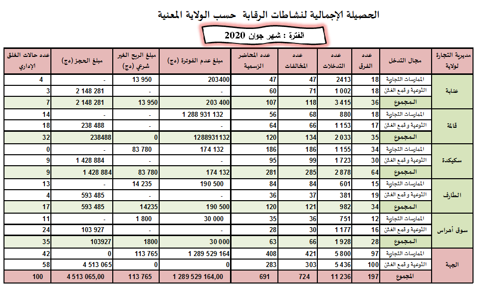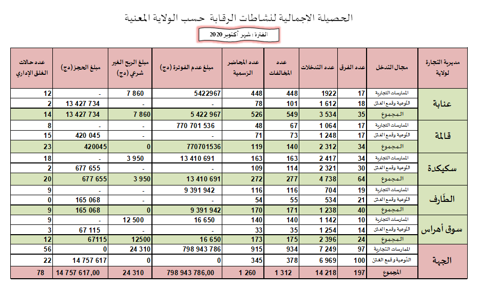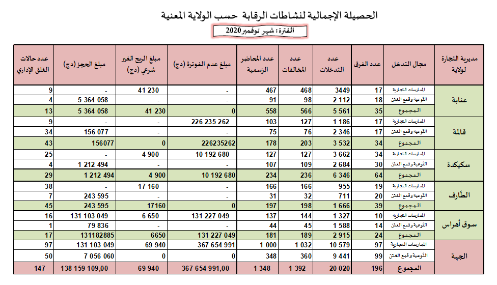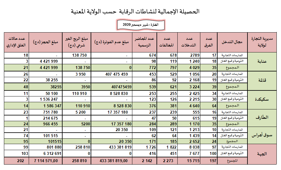 حصائل الرقابة الاقتصادية خلال سنة 2020