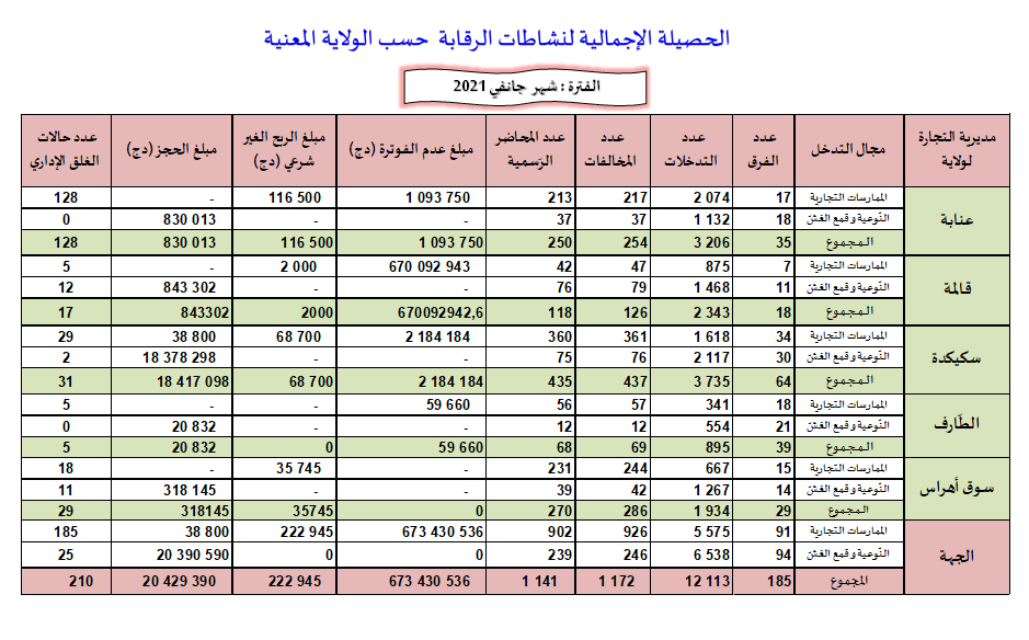 حصائل الرقابة الاقتصادية خلال سنة 2021